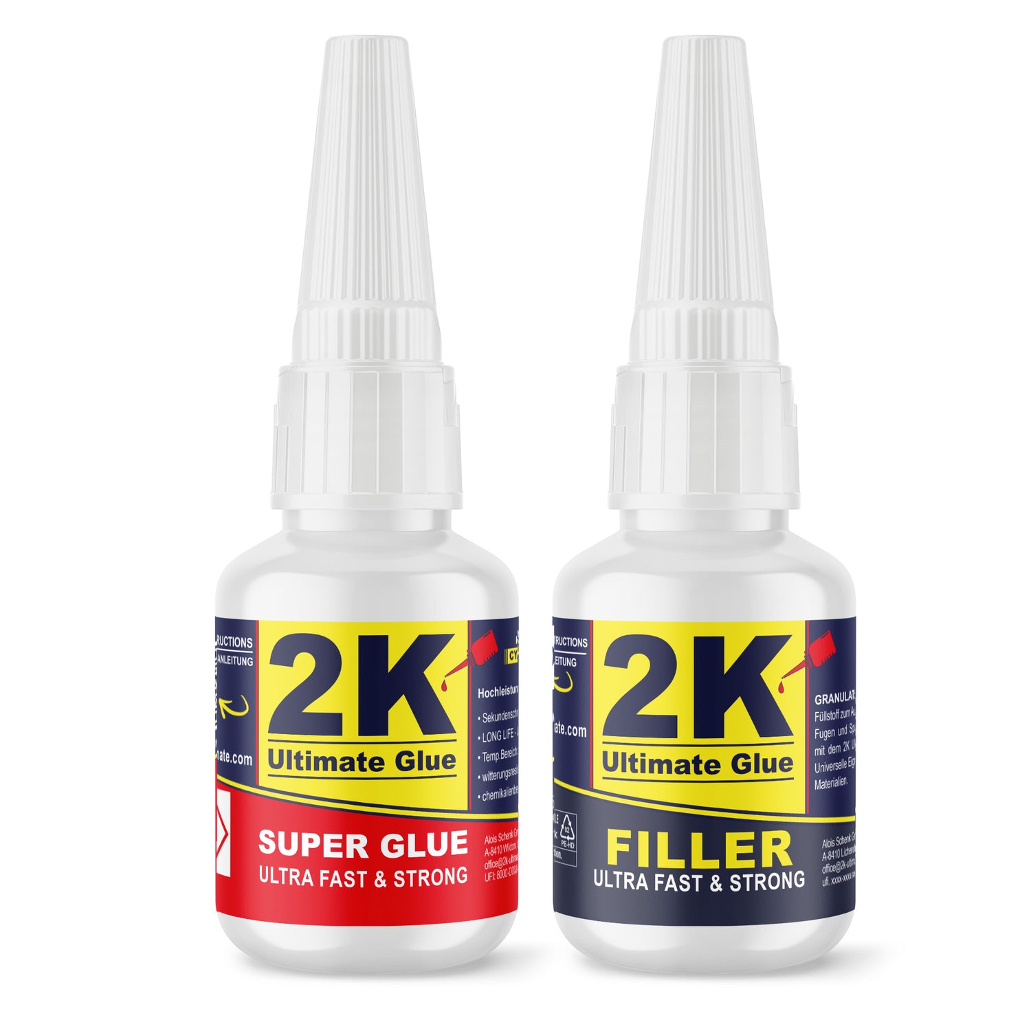 Keramikkleber, Modellbaukleber, lastikkleber, Gummikleber, Schmuckkleber, hitzebeständiger Metall- und Aluminiumkleber sowie flüssiger Sekundenkleber – 2K Ultimate Glue, ultraschnell und extrem stark.